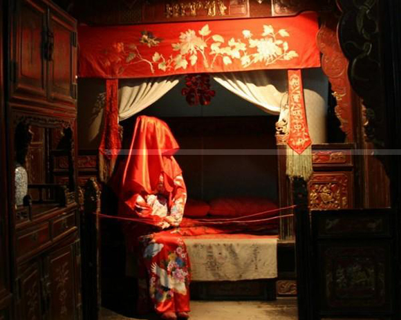 新婚之夜,在鬧洞房之前,首先要為新人布置好洞房。在黃歷中,我們會看到“安床”一詞,那么何為安床呢?其實“安床”是一個結婚術語,指嫁娶前男方安置新人房中的床。一般是在選定吉日后,在婚前幾天由“一世好運的男士”把新床移到適當的位置。位置要依男女雙方的八字以及神位等決定,而安床的住置亦不可與桌柜、方櫥的尖角相對。然后,再由一位“兒孫滿堂的女士”負責鋪床,并擺上各式喜果、蓮子、百合、花生、紅棗等很多吉利的東西在新床上,喻意百年好合,早生貴子!安床之后,禁讓自己或其他成年人坐臥,寡婦、失婚者尤忌;但可先讓嬰孩在床上玩耍,寓意添丁發財。